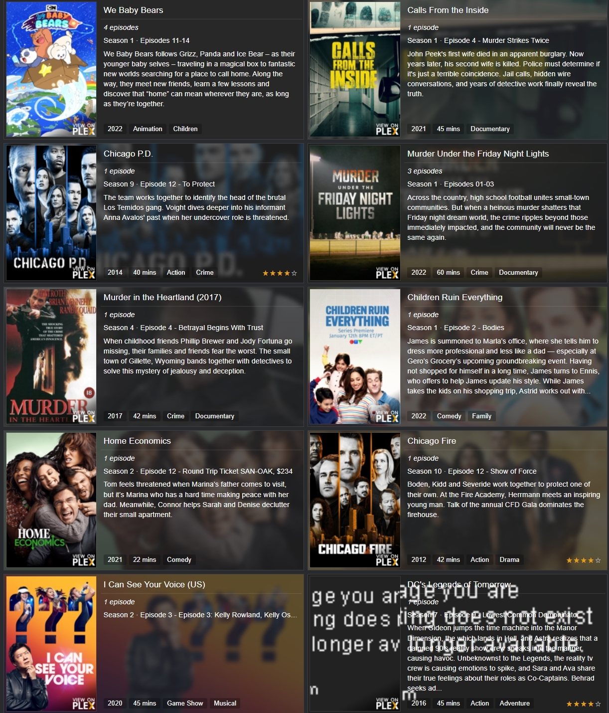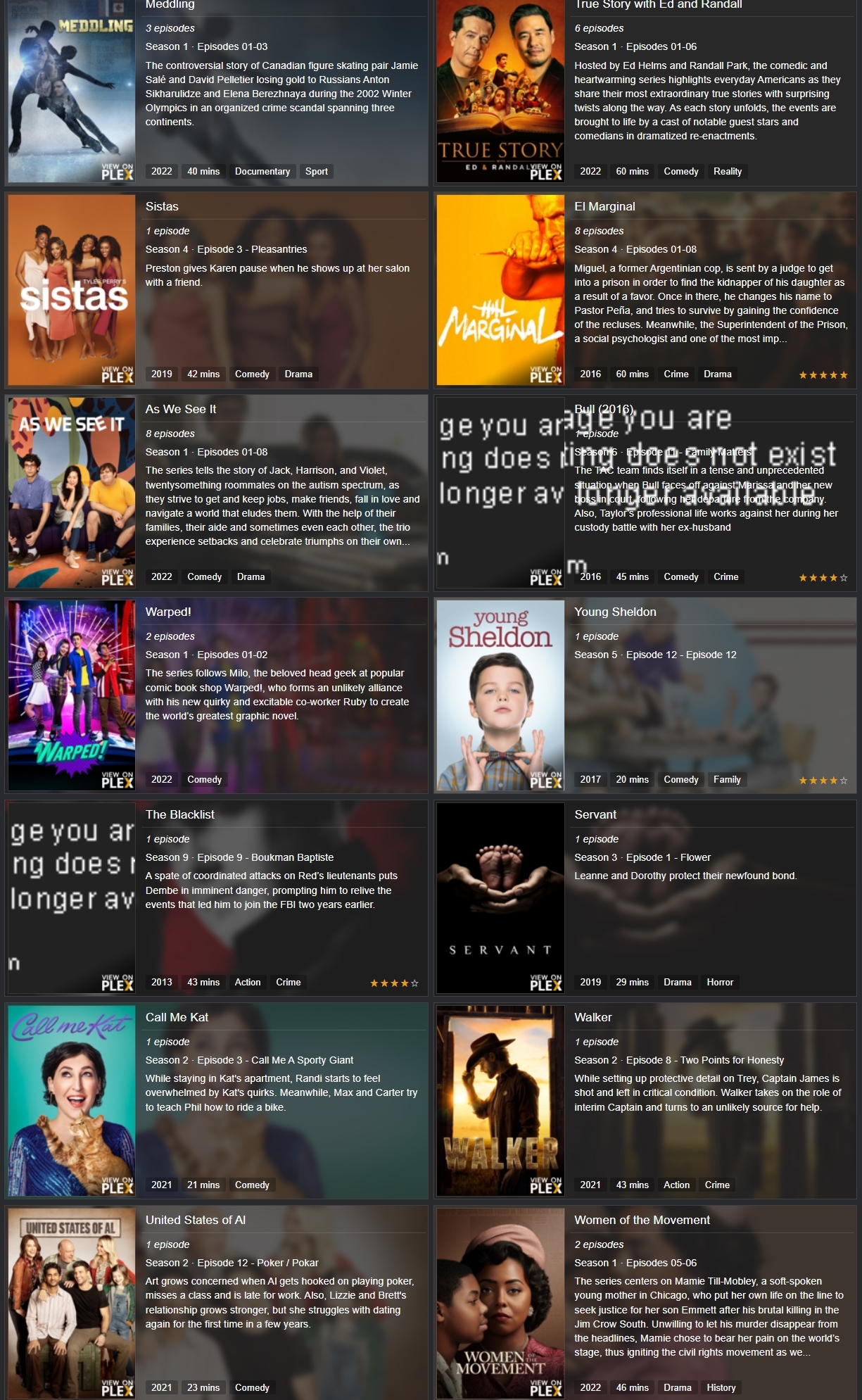 Series Adicionados hoje no Plex